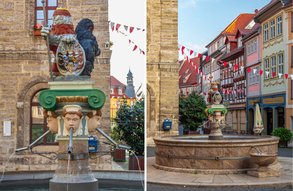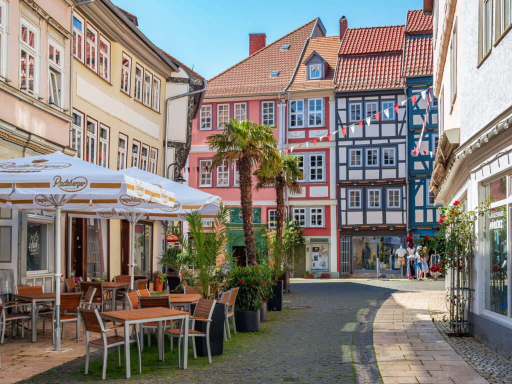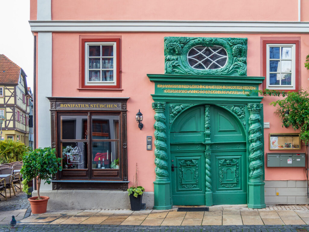 Die Marktstraße ist die Hauptgeschäftsstraße in der Fußgängerzone. Hier sind viele Geschäfte, Cafés und Restaurants angesiedelt. An den barocken Fassaden der bunten Bürger- und Patrizierhäusern kann man den einstigen Reichtum der Handelsstadt noch gut erkennen. Früher führten hier Handelswege und die Postroute Kassel-Leipzig durch. Entlang der Marktstraße lernt man einige der sehenswertesten Kulturdenkmäler kennen. Das Rathaus mit Rathausbrunnen kann man nicht übersehen und auf dem Weg zur Marktkirche St. Bonifacii kommt man an der rekonstruierten Postmeilensäule vorbei. Die meist aus heimischen Steinen gemeißelten Säulen dienten der Kennzeichnung von Entfernungen entlang der Postrouten. An der Marktkirche wird dir das imposante grüne Portal des Bonifatius Stübchens auffallen, da hüpft das Herz eines jeden Türenliebhabers!