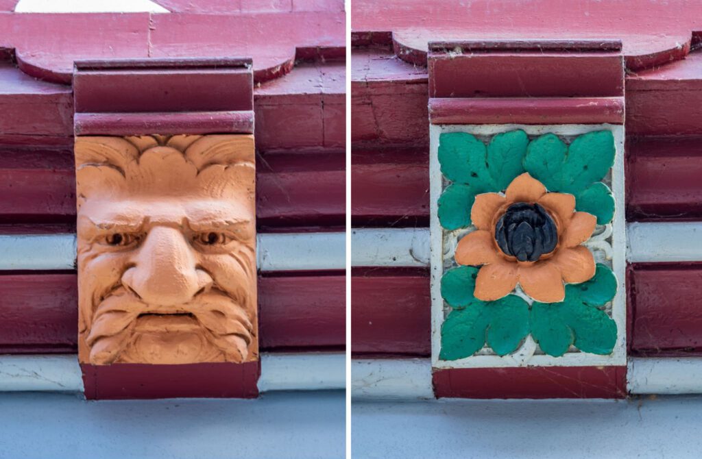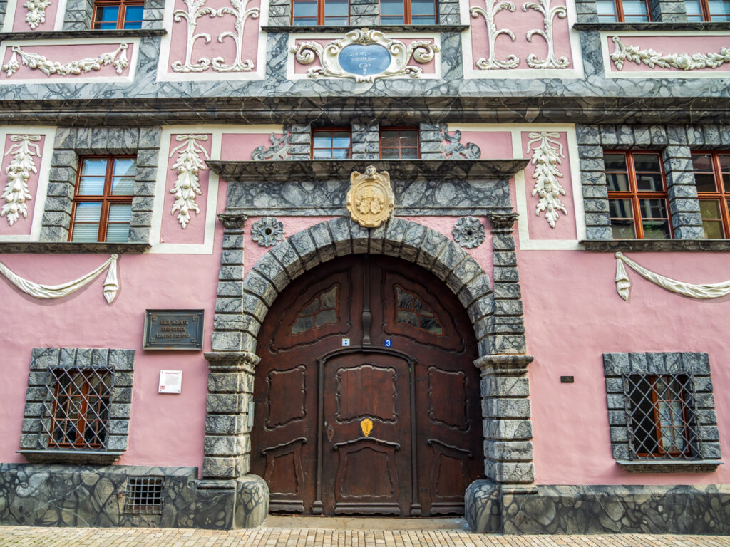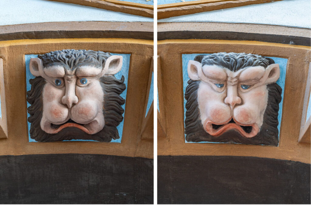 Pfui! Der Teufel! Von manchen Portalen werden dich grimmige Kerle anstarren. Sie werden Neidköpfe, Gaffköpfe oder auch Fratzen genannt und sollten das Böse, Hass, Neid und Zorn vom Haus abwehren. Am Portal der Marktstraße 25 findest du zwei besonders gruselige Kerle.
