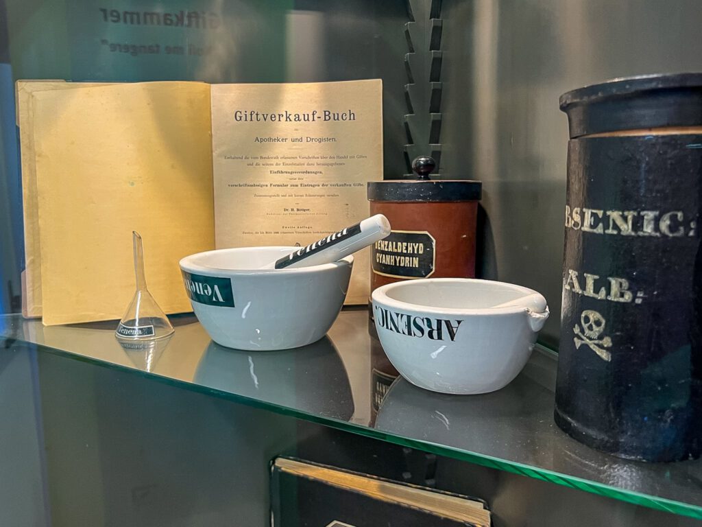 Tinkturen, Pillen & Giftschränke Im Haus zeigt die Apothekenausstellung die unterschiedlichen Funktionsbereiche alter Apotheken. Es sind die historischen Einrichtungen der Löwen- Apotheke aus Eschwege, viele pharmazeutische Arbeitsgeräte, ein nachgebautes Laboratorium und Apothekerbüro, dekorative Gefäße und vieles mehr aus 3 Jahrhunderten Pharmaziegeschichte ausgestellt. Viele Besucher werden noch die ein oder andere Arzneimittelverpackung aus DDR- Zeiten erkennen. Dem Langensalzaer Apotheker Johann Christian Wiegleb, Gründer des ersten privaten Lehrinstituts in Deutschland zur Ausbildung von Pharmaziegesellen sind eigene Ausstellungsbereiche gewidmet. Auch für „Nicht-Pharmazeuten!“ eine sehenswerte Ausstellung!
