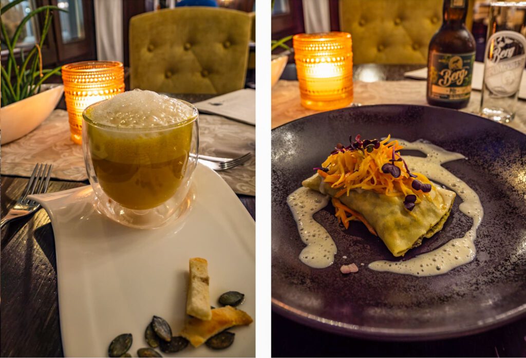 Regionaler Genuss Im Flair Hotel Vier Jahreszeiten kann man nicht nur gut übernachten, sondern auch noch im hauseigenen Restaurant „Karl‘s Esszimmer“ gehobene, regionale Küche mit Zutaten aus Baden Württemberg genießen. Das Restaurant ist ebenfalls im „Schmeck den Süden“ Gourmetführer gelistet. Sehr beliebt sind die Variationen an selbsthergestellten Maultaschen. Ich wählte das saisonale, regionale & bio 4-Gänge Biosphärenmenü mit verschiedenen Maultaschen, schwäbischen Kartoffelsalat, Kürbissuppe mit Hafermilchschaum und Variationen der Quitte mit Nougat Eis, ein hervorragendes Menü, welches auf eine genussvolle Reise durch die Kulinarik der schwäbischen Alb mitnimmt.