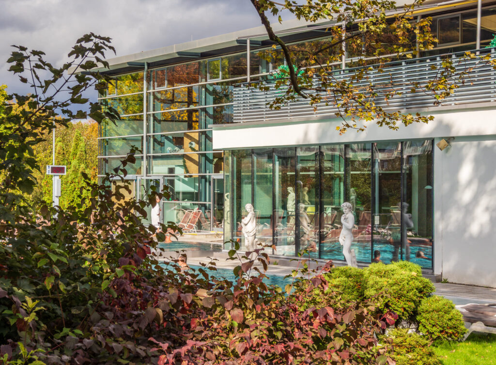 Heilen zwischen Kronleuchtern, Lichteffekten und Skulpturen Bad Urach ist staatlich anerkannter Luftkurort und Heilbad. Die AlbTherme liegt im Kurzentrum am Kurpark, etwas außerhalb der Altstadt und ist gut mit dem Stadtbus Linie 108 Haltestelle Thermalbad zu erreichen. Baden kann man in sechs Becken mit Massagedüsen (zwei Außenbecken und 3 Innenbecken), die mit reinstem Thermalwasser aus 700 Metern Tiefe und einer Wassertemperatur zwischen 32 und 38° C gespeist werden. Außerdem verfügt das Thermalbad über Sprudelliegen, eine Liegewiese, ein Kneippbecken, Solarium und ist behindertengerecht ausgestattet. Die Saunalandschaft bietet ein Dampfbad, eine Bio,- Meditations- und finnische Sauna sowie einen kostenlosen Trinkbrunnen. Wenn Hunger aufkommt muss man das Bad nicht verlassen, das eigene Restaurant bietet eine gute Auswahl an regionalen Speisen, Cocktails und Kuchen aus eigener Herstellung an. Eine Auszeit im warmen Mineral- und Thermalwasser mit Blick auf die bewaldeten Bergketten und die Burgruine Hohenurach ist heilsam für Körper und Seele und lässt sich wunderbar mit einem Städte- und Wandertrip in das Biosphärenreservat Schwäbische Alb verbinden.