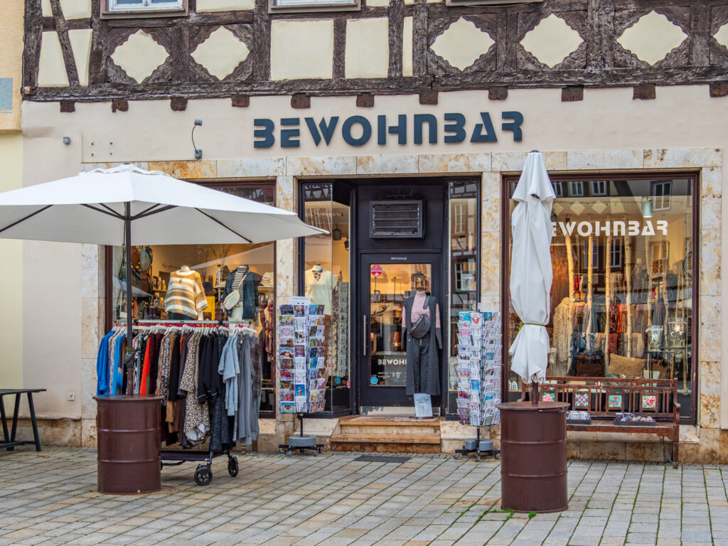 Herzenstipp Am Marktplatz im sogenannten Haus Enßlin hat Bettina Hofele schon seit über 15 Jahren ihren kleinen aber feinen Concept Store „Bewohnbar“. Ihr sorgsam ausgesuchtes Sortiment umfasst zeitlose, feminine Mode aus Dänemark und den Niederlanden, Wohnaccessoires, Geschirr, Geschenkideen, Naturkosmetik meiner Lieblingsmarke L`Occitane, Taschen, Spezialitäten und was Frau sonst noch braucht um sich wohl zu fühlen. Schau unbedingt einmal rein, denn hier bekommst du noch echte Beratung!