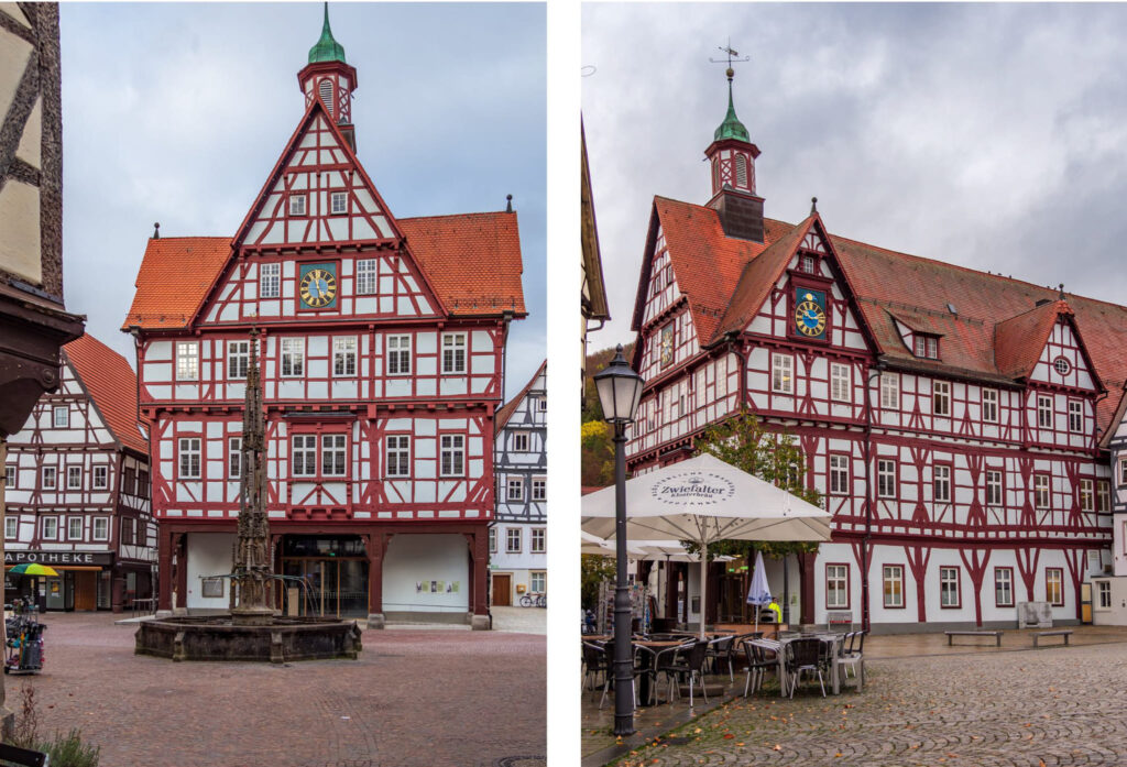 585 Jahre jung Das historische Rathaus Bad ist das Herz und Eyecatcher am Marktplatz, bis heute ist hier die Stadtverwaltung untergebracht. Es wurde 1440 erbaut, dem Jahr als Johannes Gutenberg den Buchdruck mit beweglichen Metalllettern erfand, 1562 erweitert und Anfang des 20. Jahrhunderts umgebaut. Im 15. Jahrhundert entstanden einige prächtige Fachwerkrathäuser wie dieses, aber nicht jedes überstand die vielen Stadtbrände und Zerstörungen in Kriegen. Wie viele andere, war es ein multifunktionales Gebäude, im Erdgeschoss war die offene Markthalle der Bäcker und Metzger, als auch die Fruchtschranne untergebracht. Fruchtschranne oder auch Fruchtkasten ist der mittelalterliche Begriff für einen Getreideumschlagsplatz.