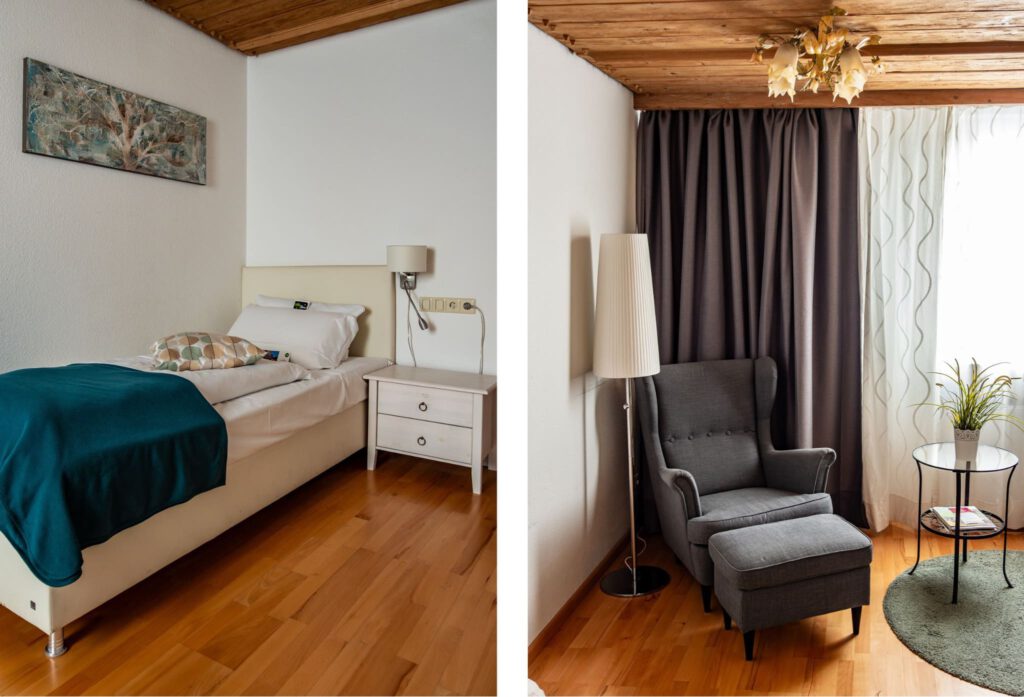 Ausschlafen und Wohlfühlen Auf zwei Häuser verteilt verfügt das Hotel über insgesamt 47 moderne und im Landhausstil eingerichtete Zimmer. Zur Auswahl stehen klassische Einzel- und Doppelzimmer, aber auch ein 2-Raum Apartment und ein großes Familienzimmer. Alle Zimmer sind bequem mit einem Fahrstuhl zu erreichen und sind mit Dusche/WC, Telefon und SAT-TV ausgestattet.
