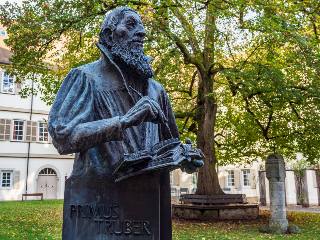 Zufluchtsort für Glaubensflüchtlinge Graf Eberhard ließ an die Stiftskirche im Jahr 1477 einen Mönchshof für Mitglieder der Reformbewegung „Brüder vom gemeinsamen Leben“ anbauen. Eberhard unterstütze die neue Bewegung, die ein ständeübergreifendes Zusammenleben sich zum Ziel machte. Die Mitglieder legten kein Gelübde ab, finanzierten sich selbst und trugen kein Ordensgewand. Eberhards Nachfolger löste das Uracher Stift wieder auf. Danach wurde der Gebäudekomplex u.a. als Bibeldruckanstalt, Fohlenstall des württembergischen Königs und bis heute als evangelisch-theologisches Seminar genutzt, der deutsche Lyriker Eduard Mörike war dort Schüler. Dem slowenischen Reformator Primus Truber ist ein Denkmal gewidmet. Er übersetzte wie Luther die Bibel in seine Landessprache und musste aus Slowenien fliehen, in Urach bekam er Exil und gründete dort eine Druckerei für reformatorische Schriften. Der idyllische Hof ist durch ein Tor frei zugänglich. Schau mal rein, hier kannst du die Ruhe genießen, bevor es weiter geht die schönsten Ecken Bad Urachs zu entdecken.