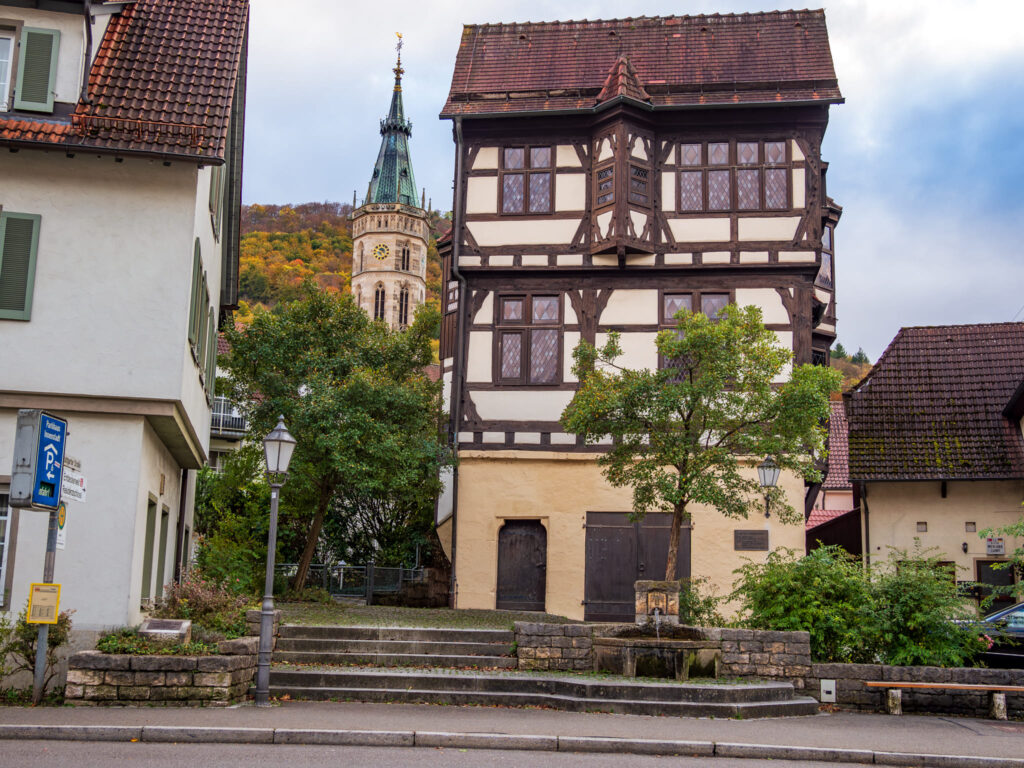 Vorbote der Renaissance in Württemberg Das Haus am Gorisbrunnen musst du dir unbedingt ansehen! Es zählt zu den schönsten spätmittelalterlichen Fachwerkhäusern der schwäbischen Kleinstadt und ich bin total begeistert von seinem urigen Erscheinungsbild. Erbaut wurde es ebenfalls von Graf Eberhard im Bart um ca. 1476 am Rande des Burgviertels. Sein Nutzen ist nicht genauer bekannt. Aufgrund der Lage vermutet man, dass es als Ständehaus, das war ein Versammlungsort der Landesstände mit deren Behörden oder als Gästehaus gedient haben könnte. Das markante Aussehen ist umfassenden Restaurierungs- und Rekonstruktionsarbeiten im Jahr 1977 -1981 zu verdanken. Ich habe alte Fotos von dem Gebäude gesehen, es war sehr runtergekommen und auf den ersten Blick hätte ich es nicht wiedererkannt. Eine neu gegründete Initiative nahm sich dem historischen Schatz an und gab ihm seine ursprüngliche Gestalt zurück.